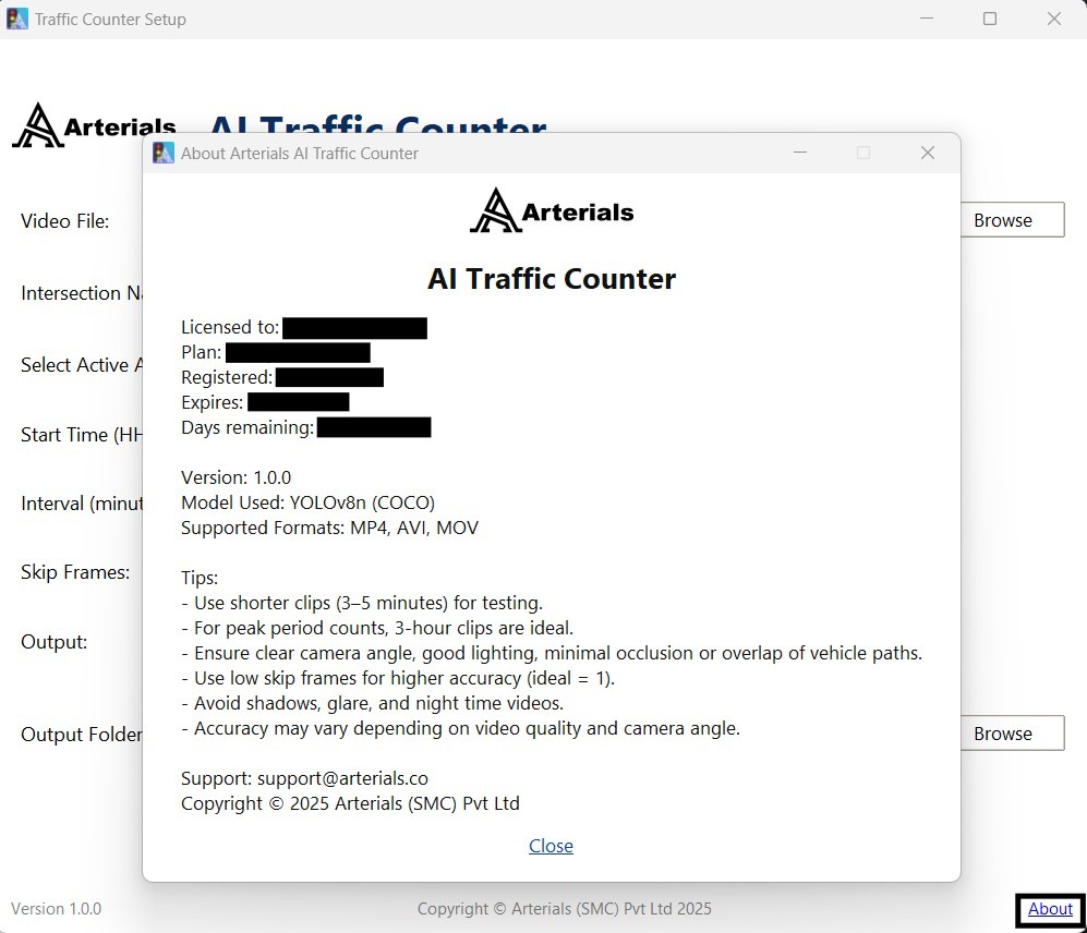 Professional, reliable, and efficient. Arterials AI Traffic Counting Software is a smart solution for modern traffic monitoring.