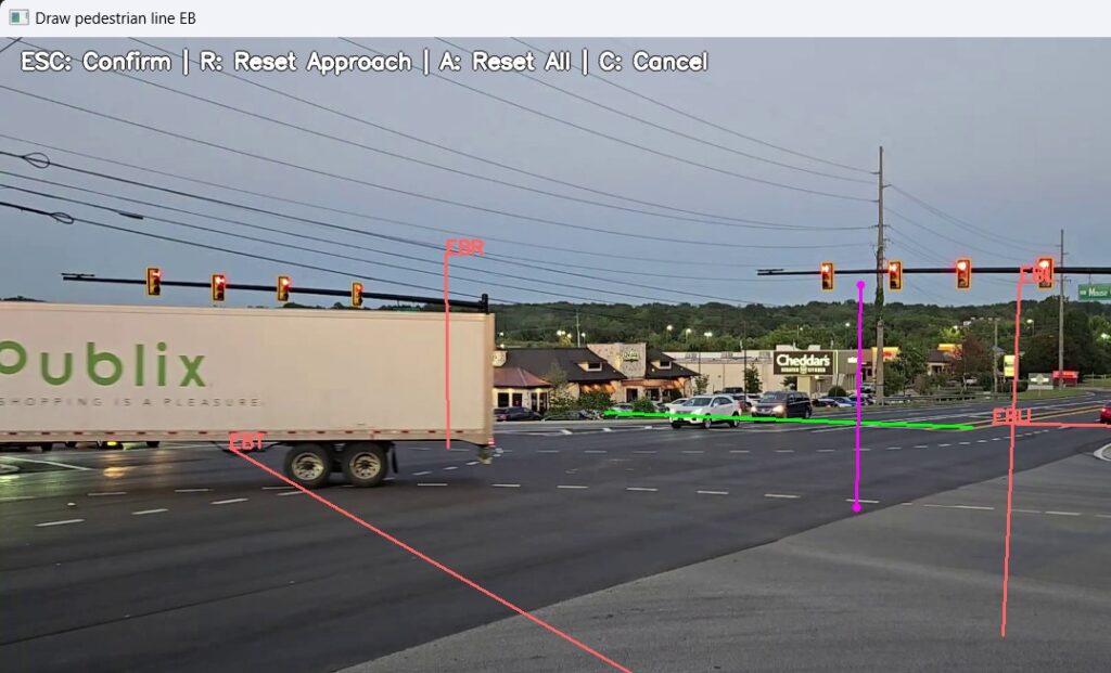 After all Approach, Movement, and Pedestrian Lines have been drawn, the AI engine begins analyzing your video.
