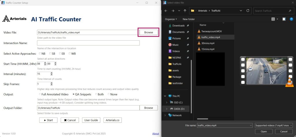 - Select your traffic video file (