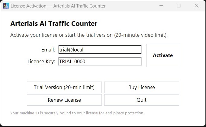 Arterials AI Traffic Counter automates traffic data collection using artificial intelligence. Follow the steps below to install, activate, and use the software effectively.