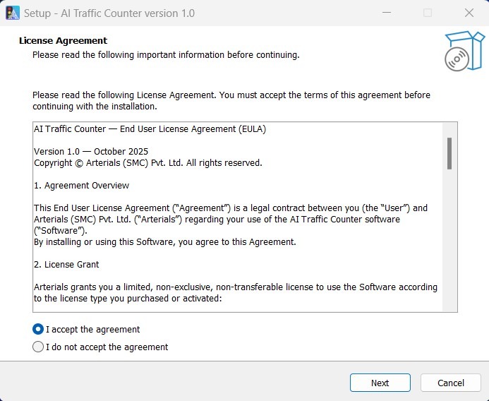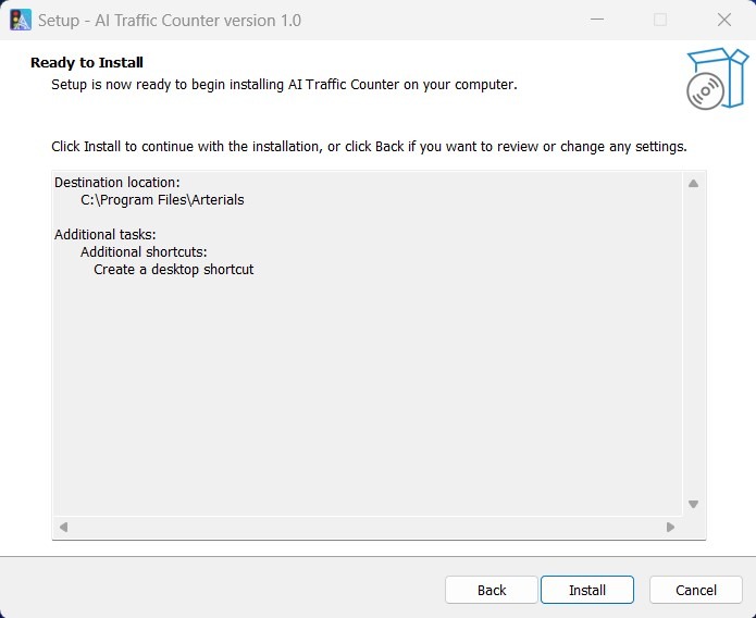 - Once installed, launch Arterials AI Traffic Counter from your desktop or Start Menu.